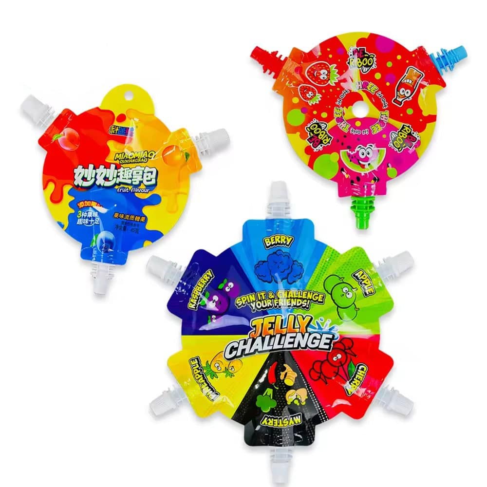 Our 6-in-1 jelly spout pouches feature six separate chambers, each with its own spout—perfect for multi-flavor jelly and kids’ snacks.