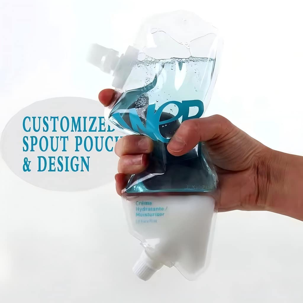 Compared to rigid plastic bottles or separate containers, a 2-in-1 pouch uses less plastic material, making it a more sustainable and lightweight packaging choice.